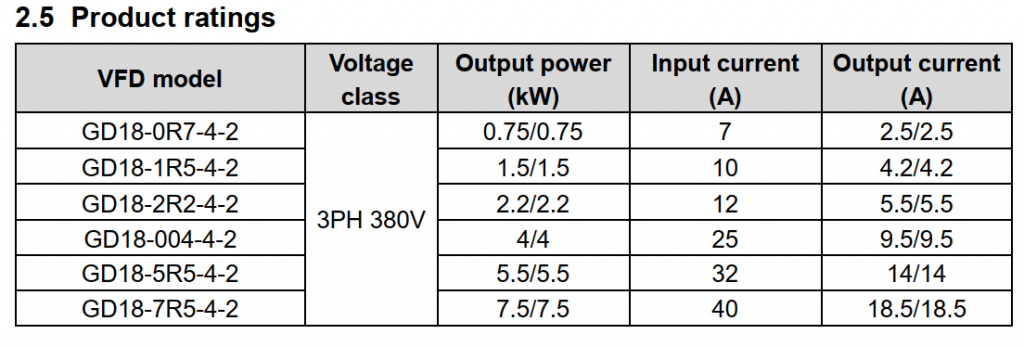 - Công suất: 3 Phase 380VAC / 0.75-7.5kW