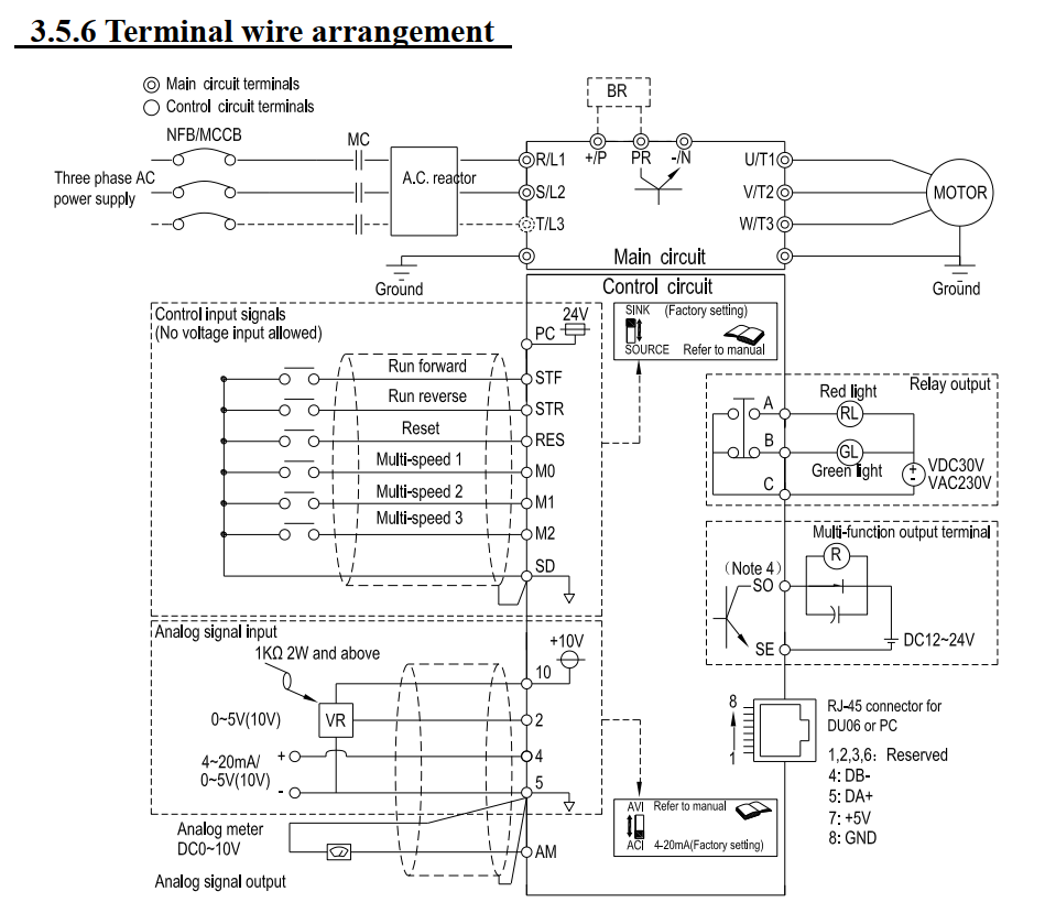 - 3 pha 200~240VAC, 0.4~3.7kW