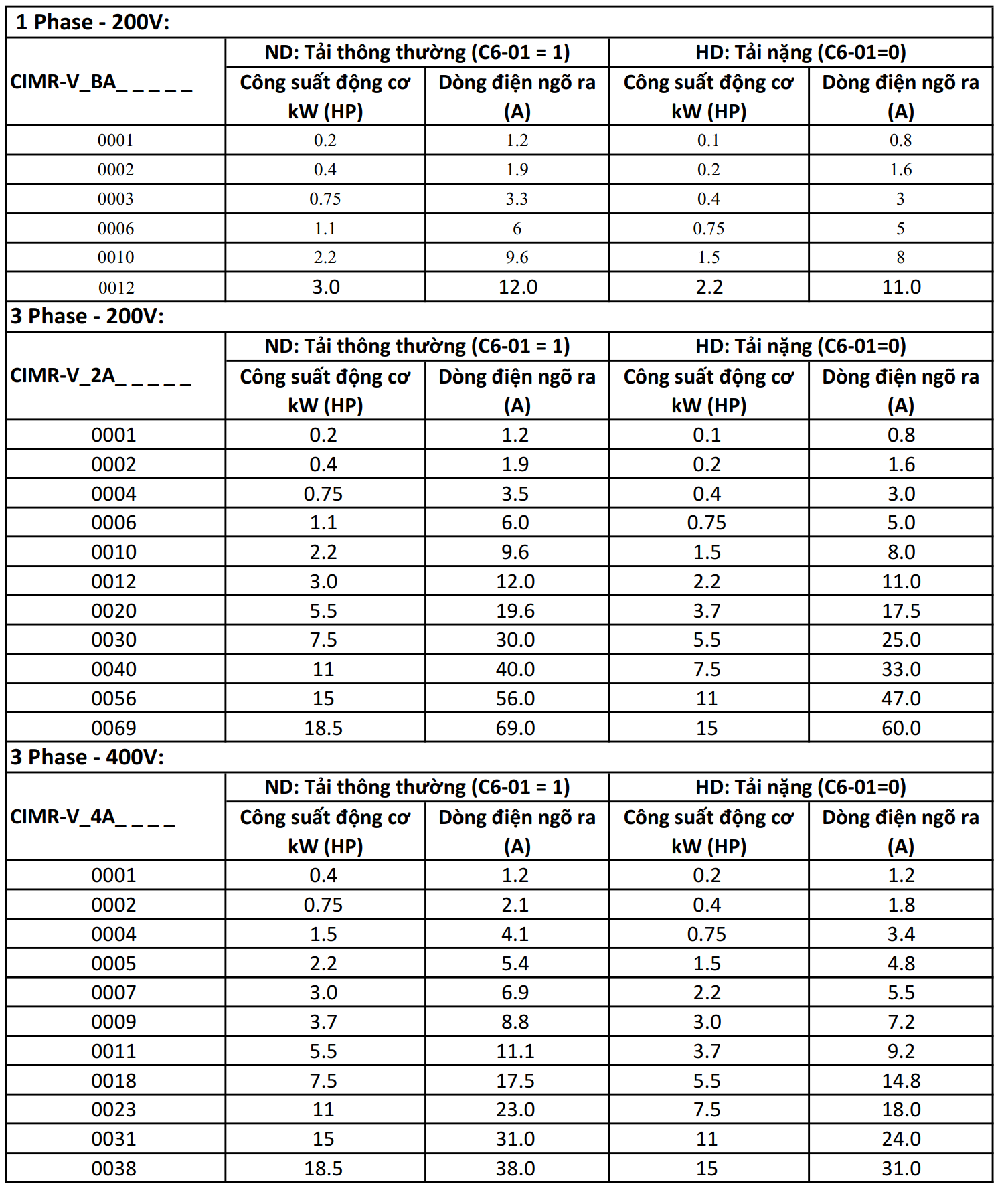 - 200 V Class, Three-Phase Input: 0.1 to 18.5 kW