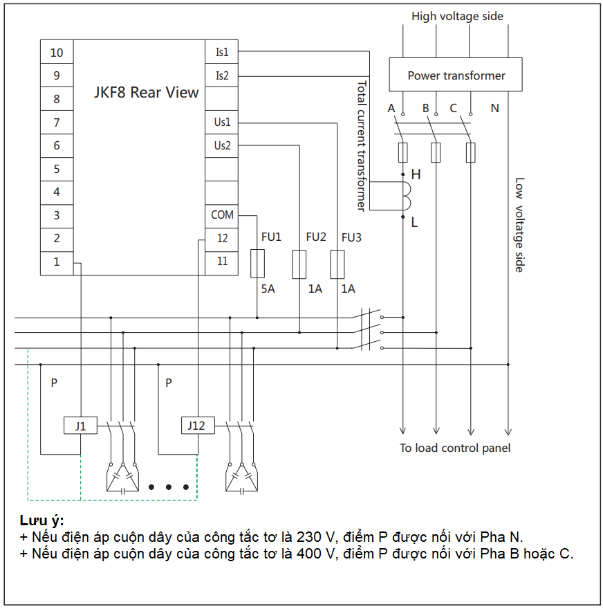 - JKF8-12 (số vòng lặp có thể được đặt trong khoảng từ 1 đến 12)