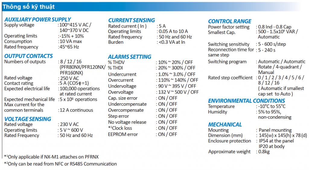 | PFR80NX | 8 bước, 50/60Hz, 100 ~ 415 VAC hoặc 140 ~ 340VDC |