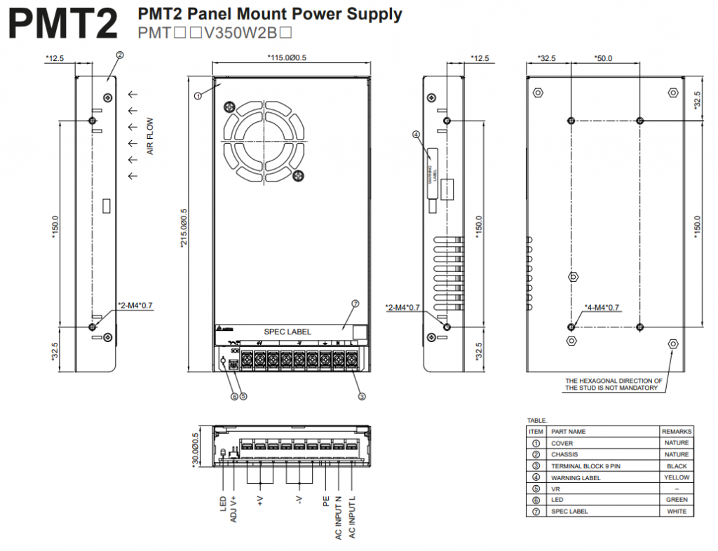 - Có thể chuyển đổi bằng công tắc (90-132 VAC, 180-264 VAC)