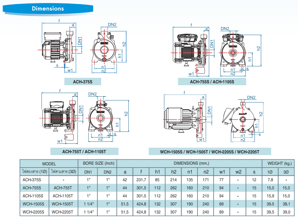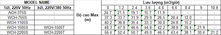 Bơm ly tâm cột áp cao A/WCH Series: bơm chuyên dụng để cung cấp nước cho các nhu cầu gia dụng và dân sự, đặc biệt bơm còn được ứng dụng trong hệ thống bơm tự động với bồn chứa vừa và nhỏ. Ngoài ra còn được dùng để bơm tuần hoàn nước cho các hệ thống đài phun nước, …