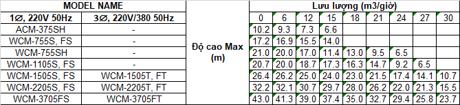 Bơm ly tâm cột áp trung bình A/WCM Series: luôn đạt được cột áp yêu cầu ngay cả khi hoạt động liên tục hoặc làm các tác vụ nặng. Thích hợp cho các hệ thống bơm nước tự động, với yêu cầu đạt được áp lực cao cho các phòng trong khách sạn hay nhà trong chung cư. Ngoài ra bơm còn được ứng dụng trong nhiều ngành công nghiệp khác nhau, nơi đòi hỏi lưu lượng và cột áp đều phải cao.