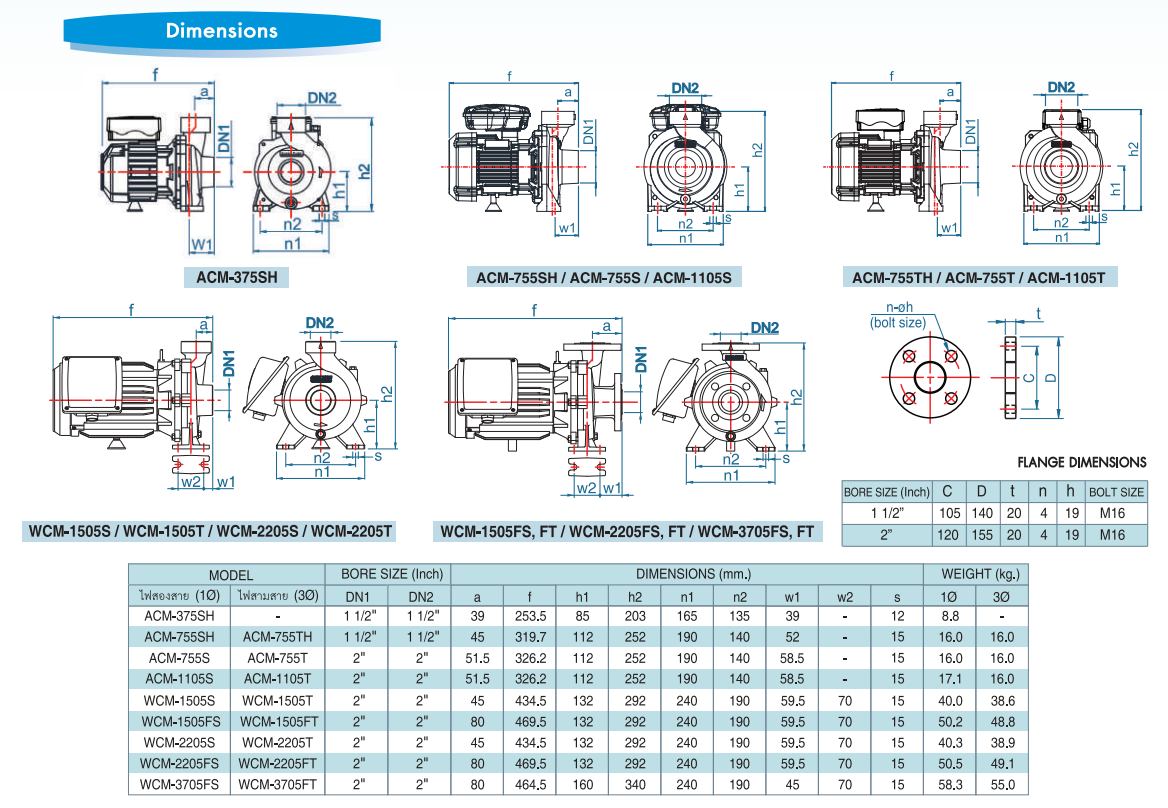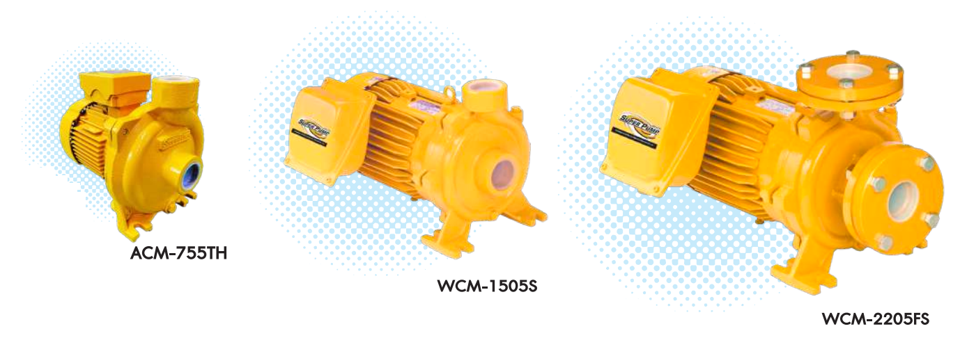 Bơm ly tâm cột áp trung bình A/WCM Series: luôn đạt được cột áp yêu cầu ngay cả khi hoạt động liên tục hoặc làm các tác vụ nặng. Thích hợp cho các hệ thống bơm nước tự động, với yêu cầu đạt được áp lực cao cho các phòng trong khách sạn hay nhà trong chung cư. Ngoài ra bơm còn được ứng dụng trong nhiều ngành công nghiệp khác nhau, nơi đòi hỏi lưu lượng và cột áp đều phải cao.