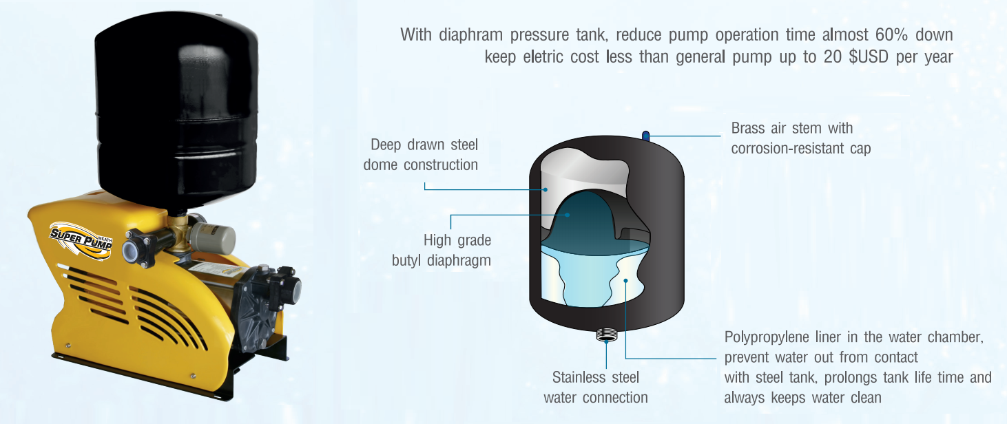 + Bình tích áp được tráng một lớp nhựa Polypropylene giúp cho nước tránh tiếp xúc trực tiếp với bình, làm tăng tuổi thọ cũng như giúp nước không bị bẩn.
