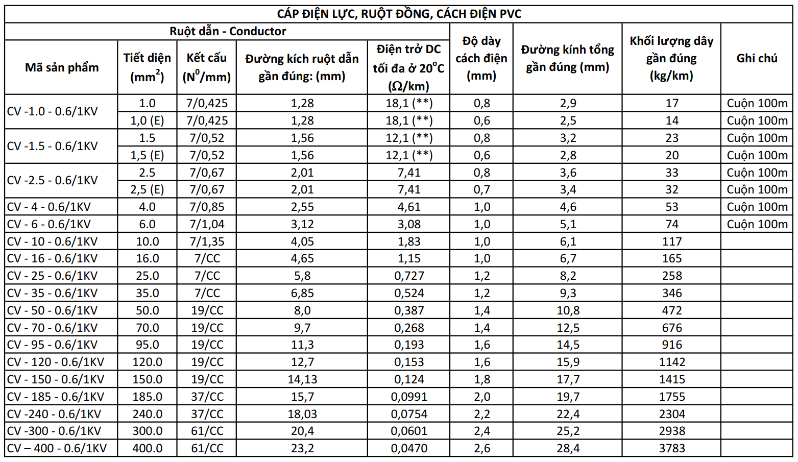 Danh mục: CADIVI, CÁP ĐIỆN ĐỘNG LỰC & CÁP ĐIỀU KHIỂN Từ khóa: Cáp điện hạ thế, Cadivi, CV