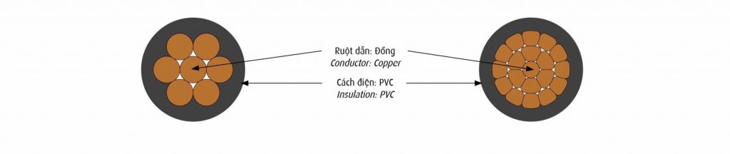 • CC   Ruột dẫn tròn xoắn ép chặt