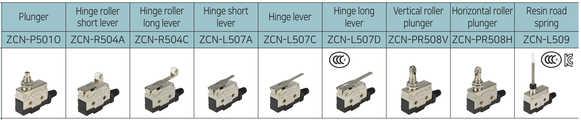 | ZCN-PR508H | Dạng nút nhấn con lăn dọc (Horizontal roller plunger) |