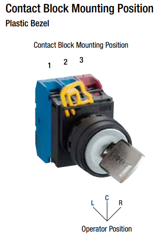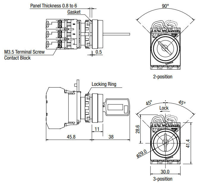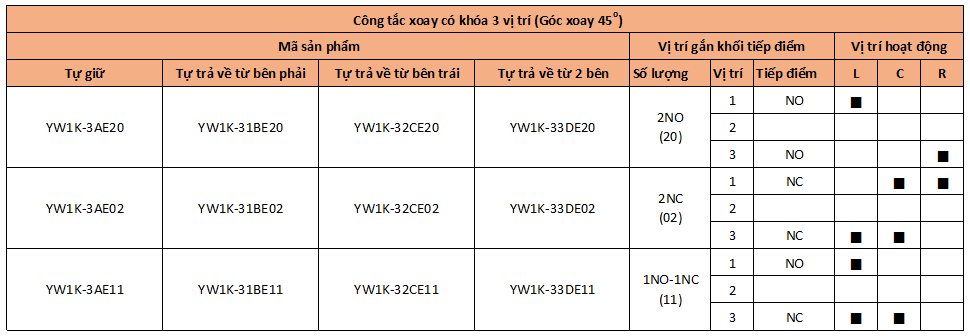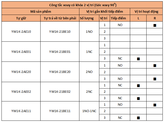 Công tắc xoay có khóa 2 vị trí, 3 vị trí: góc xoay 90º