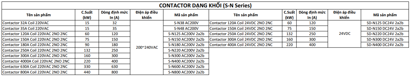 Contactor dạng khối S-N Series: dòng điện định mức: 120-800A