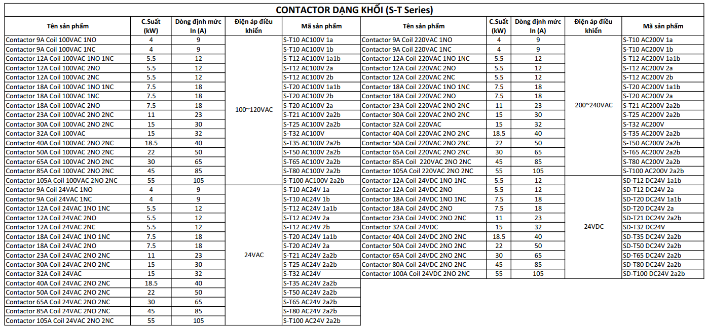 Contactor dạng khối S-T Series: dòng điện định mức: 9-105A