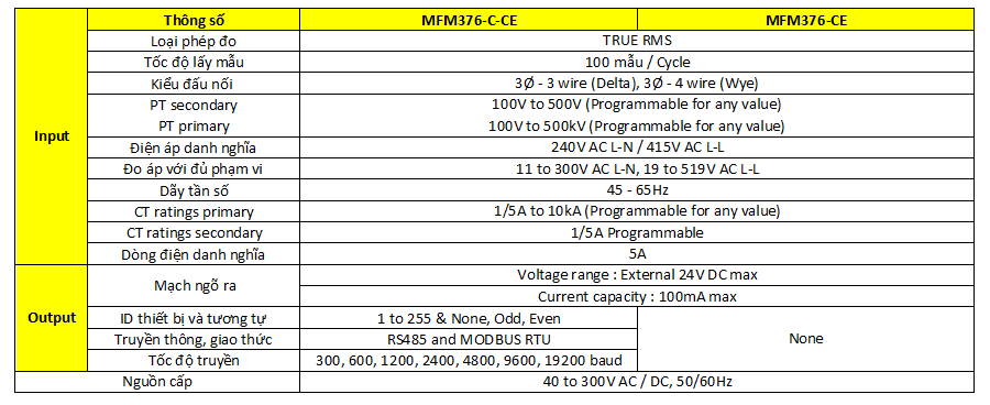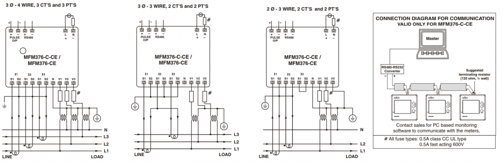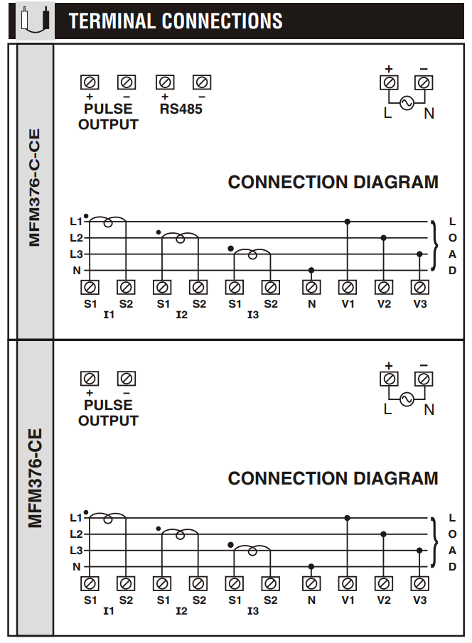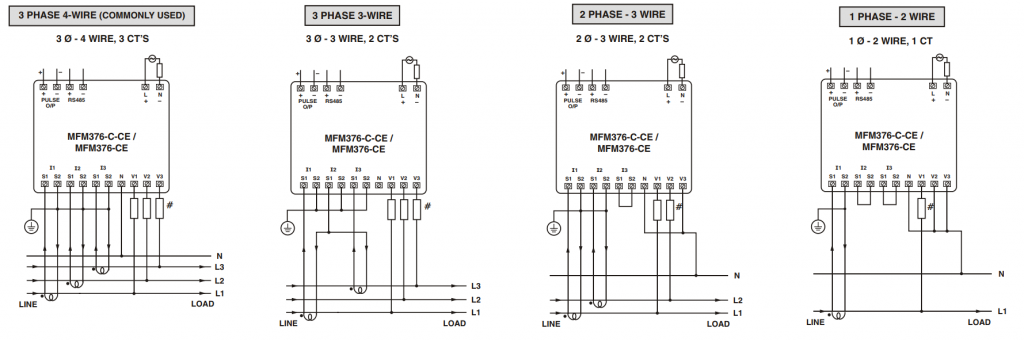 Sơ đồ đấu nối: (MFM376-CE không có Truyền thông RS485)