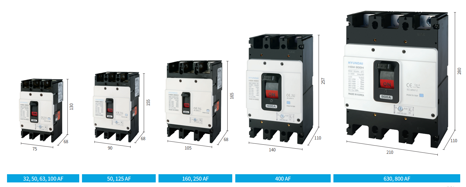 | HGP250F-F 3P | 100-125-150-160-175-200-225-250A | 50kA |