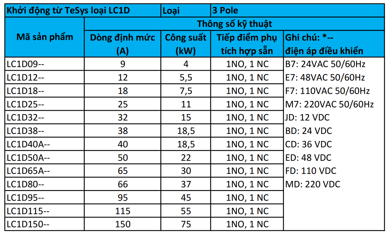 Độ bền cơ học cao lên đến 20 triệu lần đóng cắt đối với contactor từ 9-38A