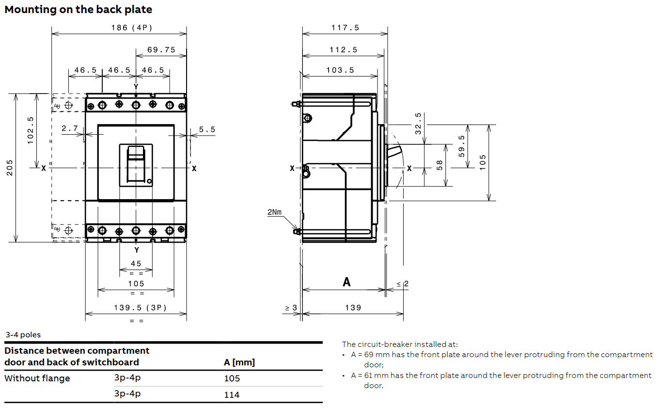 | A3 400A và 500A, 3 cực và 4 cực cố định | |||||