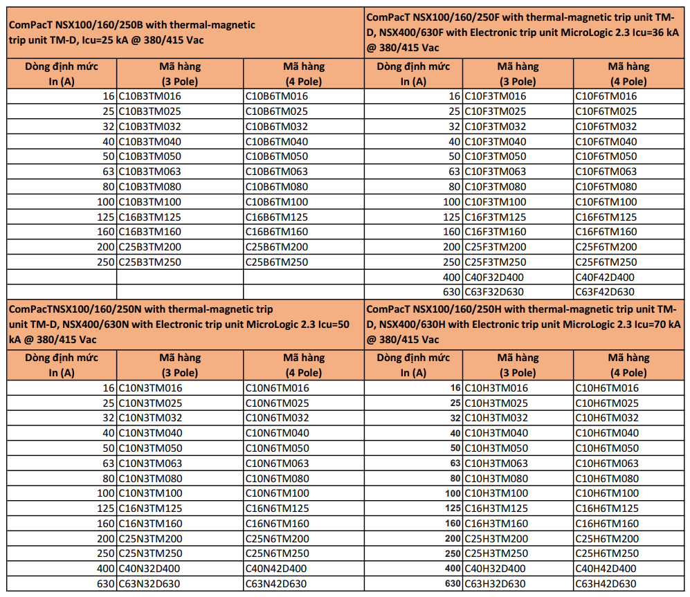 Dòng định mức: 16~630A