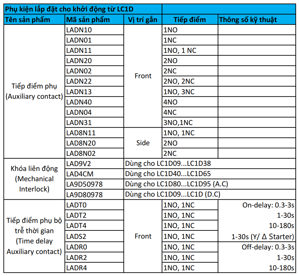 Phụ kiện dùng cho Khởi động từ LC1D Schneider