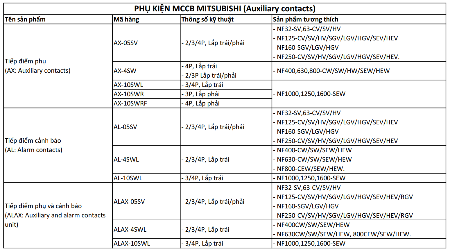 PHỤ KIỆN MCCB MITSUBISHI (Auxiliary contacts)