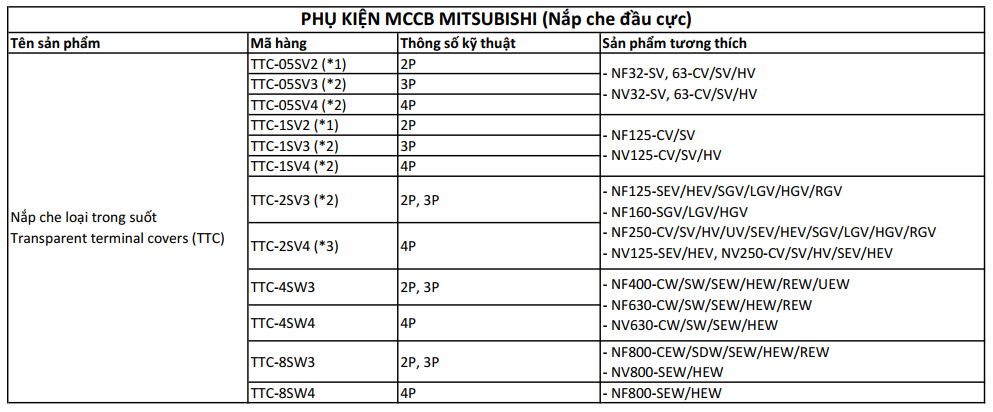 * 4 Phù hơn với MCCB ≤ 200A, (kích thước cáp đấu nối tối đa 100mm2)