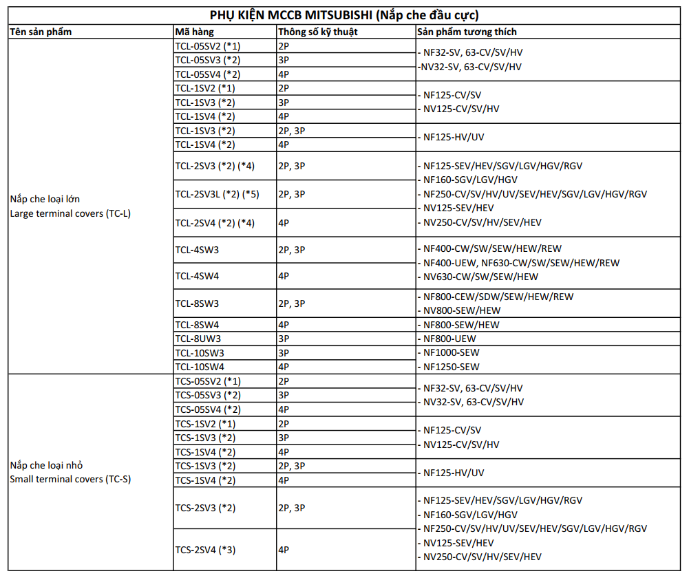 * 4 Phù hơn với MCCB ≤ 200A, (kích thước cáp đấu nối tối đa 100mm2)