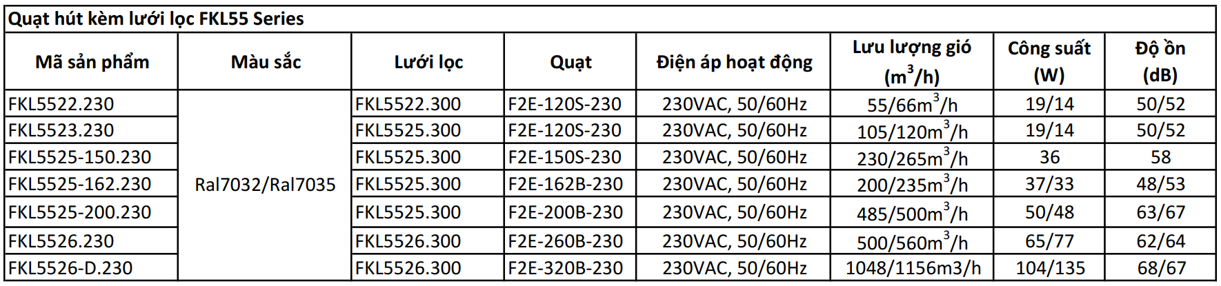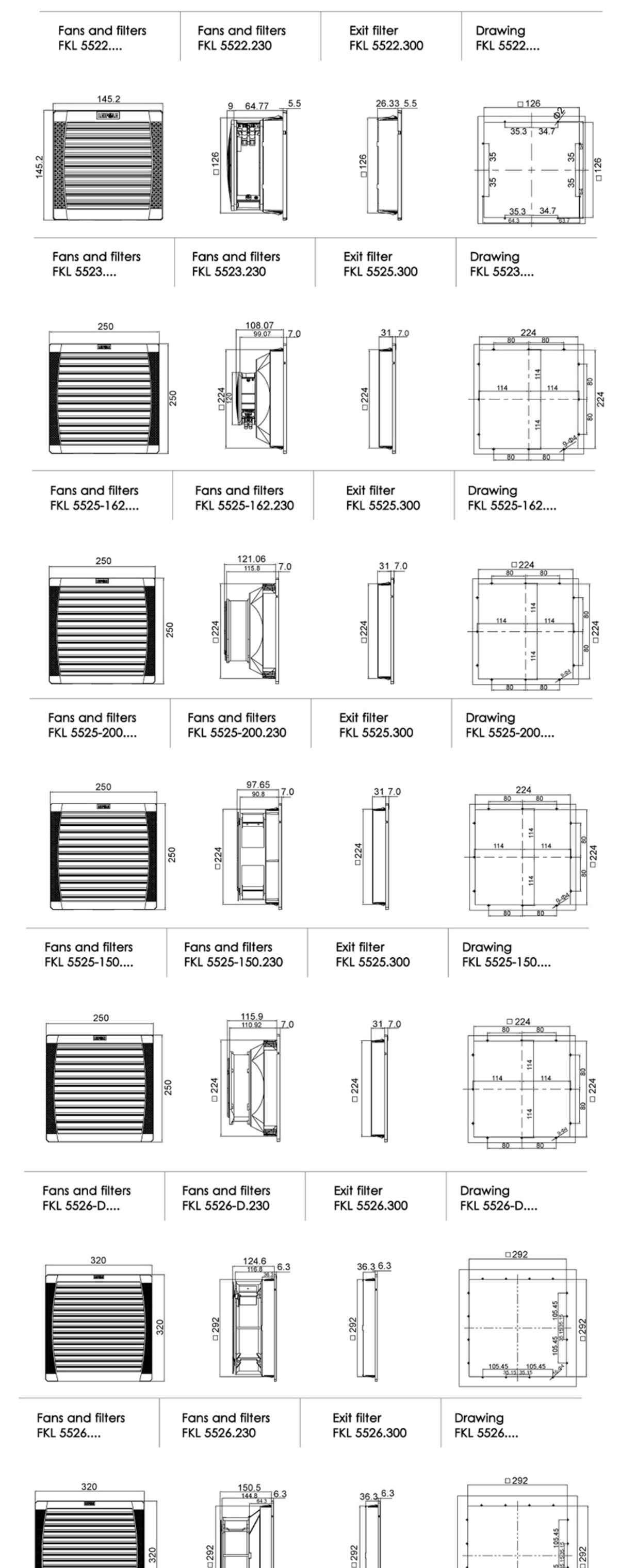 Quạt hút FKL55 series bao gồm quạt F2E series và tấm lọc FKL55 series, còn được gọi là quạt hút tủ điện.