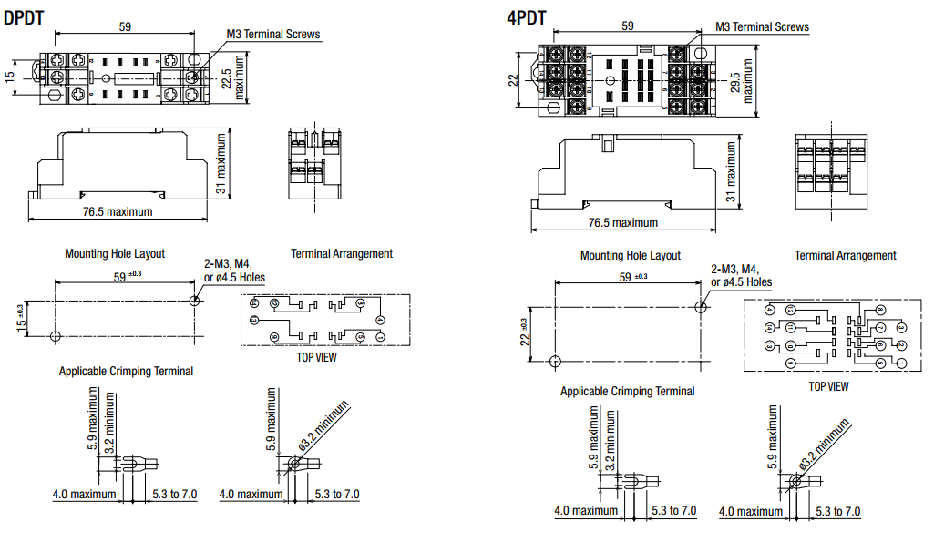 | Mã Relay | Mô tả | Điện áp cuộn coil | Dòng điện Imax | Mã Socket |